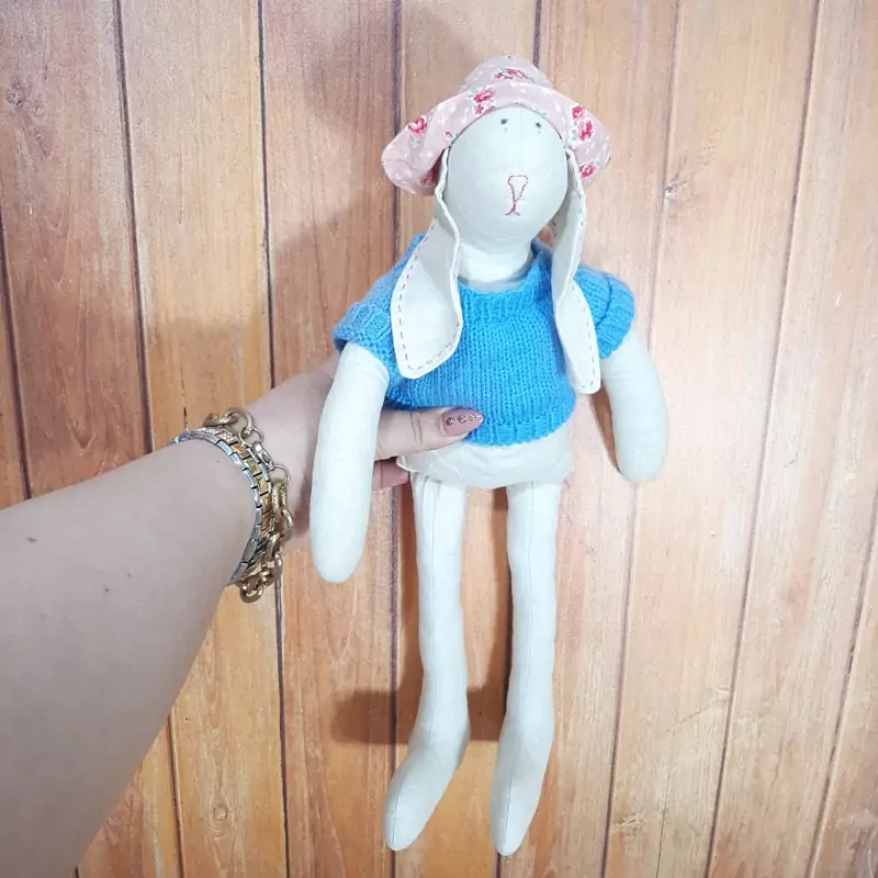 عروسک دستدوز خرگوش.تمام دستساز،بسیااااار زیبا و با کیفیت،لباسش دستبافت. جنسش کتان طور، قابل شستشو ست.