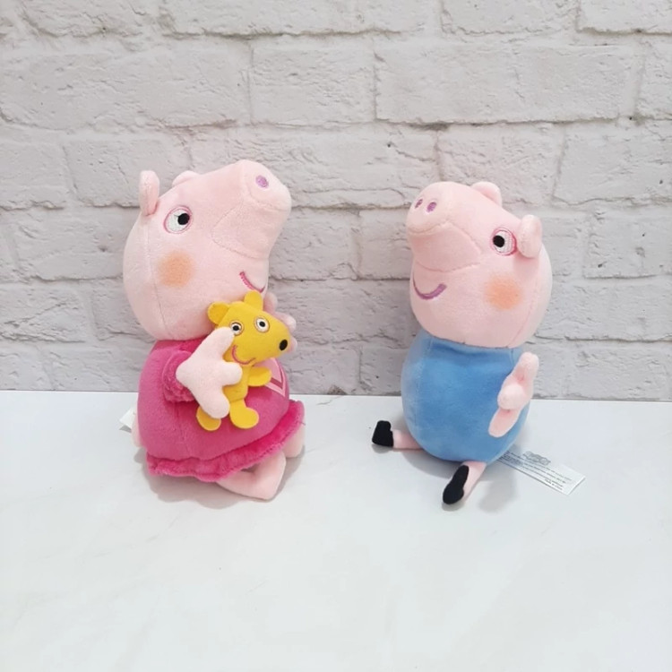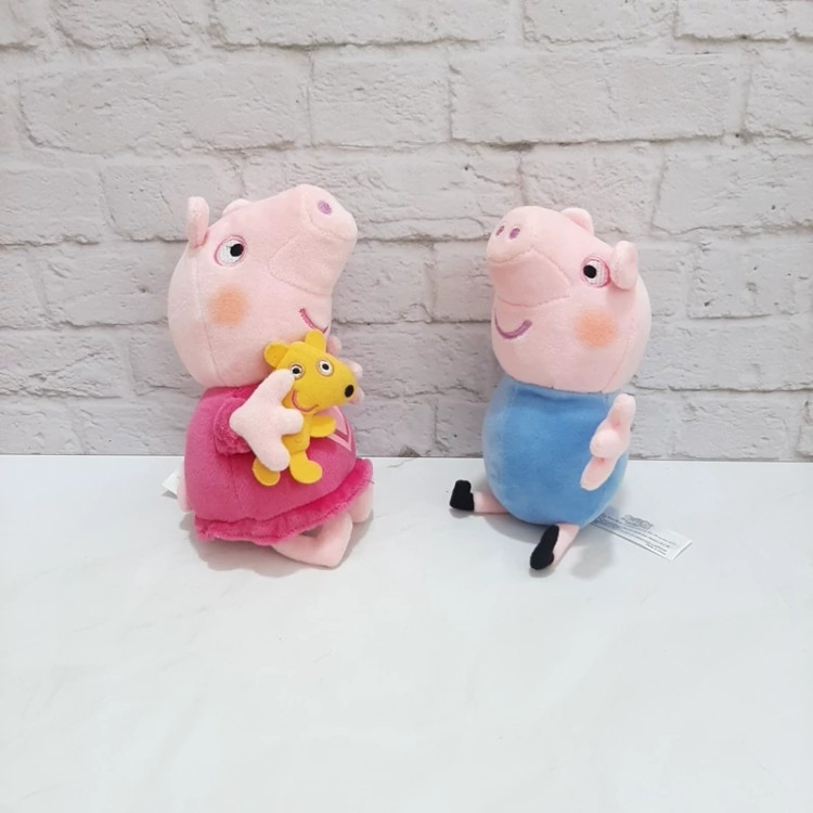 ست دو عددی پپاپیگ تدی به بغل و جرررررج محبوب . اورجینال و خارجی ، هر دو درجه یک با کیفیت عاااااااالی ، جنسشون مخمل پرز کوتاه لطیف ، براق ، بسیار خوش رنگ ، کاملا شبیه کارکترهای اصلی .اجزای صورتشون گلدوزی شده ، ضد حساسیت .قابل شستشو .