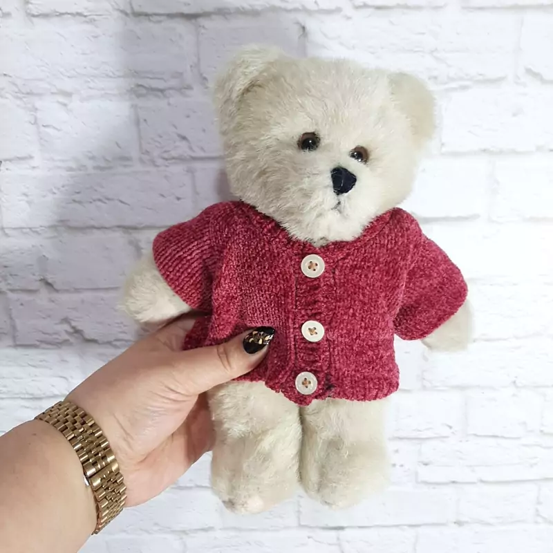 عروسک پولیشی خرس برند ستلر.تمام مفصلی،خز سوزنی.ژاکتش دستبافه،بسیار زیبا و خاص.