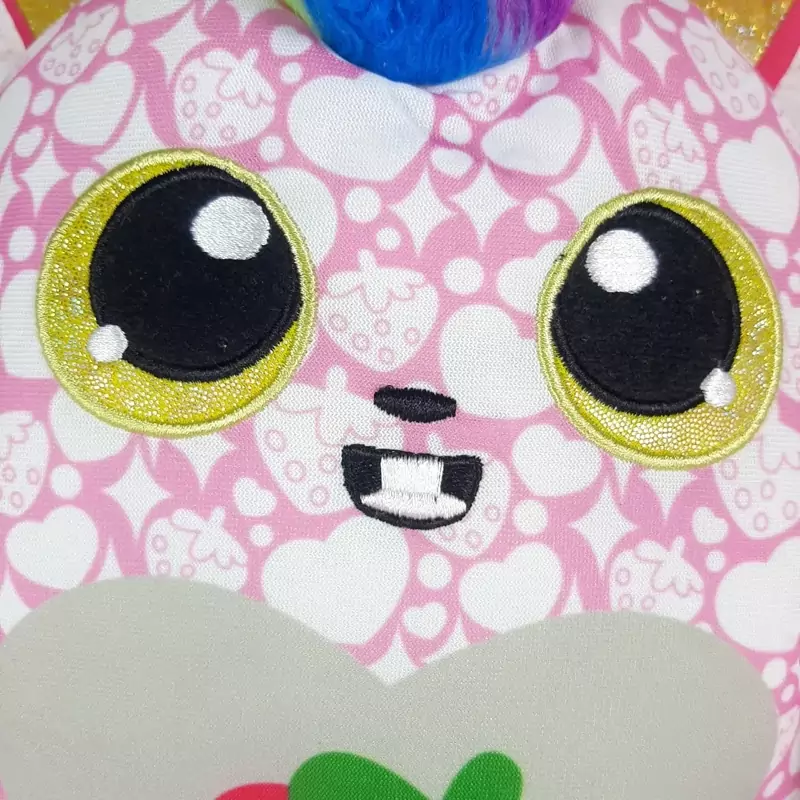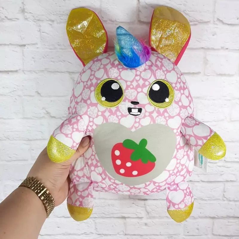 عروسک فوق العاده زیبای خرگوش مدل توت فرنگی رینبوکورنز.گوش،بال و دست وپاهاش پارچه اکلیلی،همچنین شاخ و دمش.قابل شستشوست.تپلی و حجیم.اجزای صورتش گلدوزی شده،یک کار کمیاب و خاص.