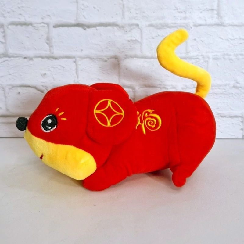 عروسک خارجی و اورجینال فوق العاده زیبا و خاص موش چینی . روی بدنش گلدوزی با نخ های زرد ابریشمی داره ، جنسش مخمل براق پرز کوتاه بسیار خوش رنگ ، بالای سرش بند و چسبونده برای آویزان کردن داره، قابل شستشو ست و ضد حساسیت ، توپر .