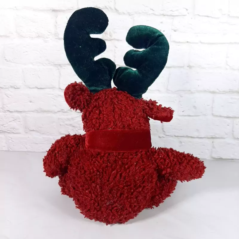عروسک خارجی و اورجینال گوزن بسیااار خوش رنگ و زیبا ، با شاخ های مخمل سبز کله غازی ، خزش شاین و براق با رده های اکلیلی خیلی زیبا . داخلش شن داره ، رنگش زرشکی براق فوق العاده خوش رنگه. درجه یک .قابل شستشو ست .