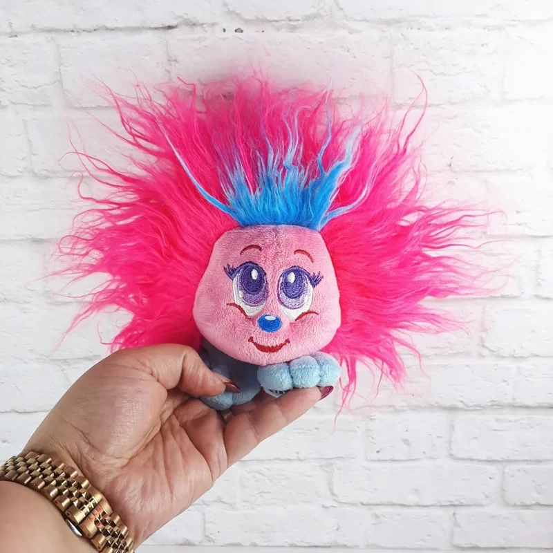 عروسک پولیشی پیکمی پاپز موفشنی،اجزای صورت و کف پاش با نخ های ابریشمی گلدوزی شده،بسیار زیبا و خوش رنگ هس.