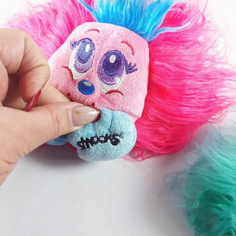 عروسک بسیار خوش رنگ و زیبای پیکمی موفشنی،داخلش دانه های معطر داره، اجزای صورت و کف پاهاش گلدوزی شده،جنسش مخمله،قابل شستشوست.