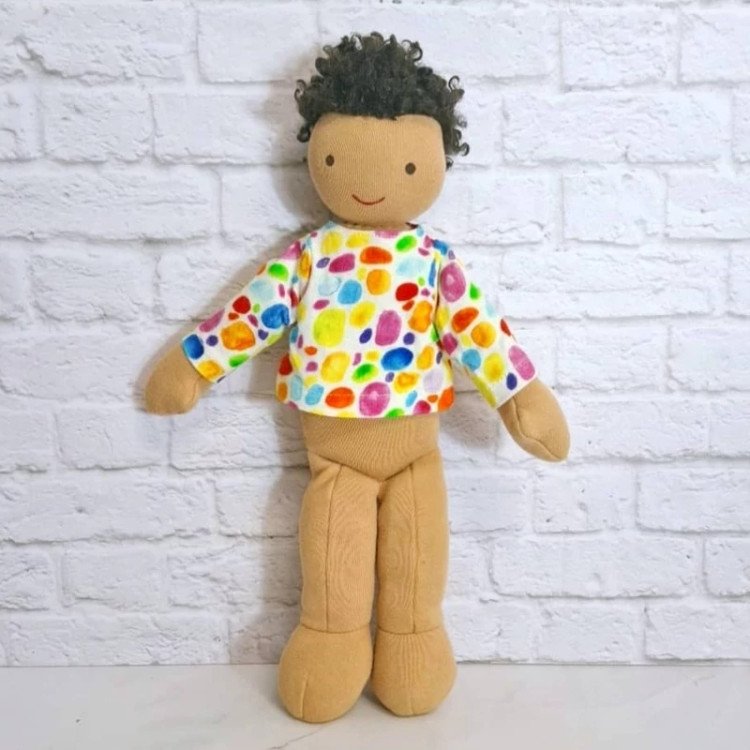 عروسک خارجی و اورجینال پسرک پارچه ای بسیار زیبا و با کیفیت. یک کار بسیار خاص ، موهای فرفری و رنگ پوست سبزه داره ، ضد حساسیت و قابل شستشو ست. بسیار خاص و زیبا ست. یک کار کلکسیونی و خاص، اجزای صورتش با نخ ابریشمی گلدوزی شده.
