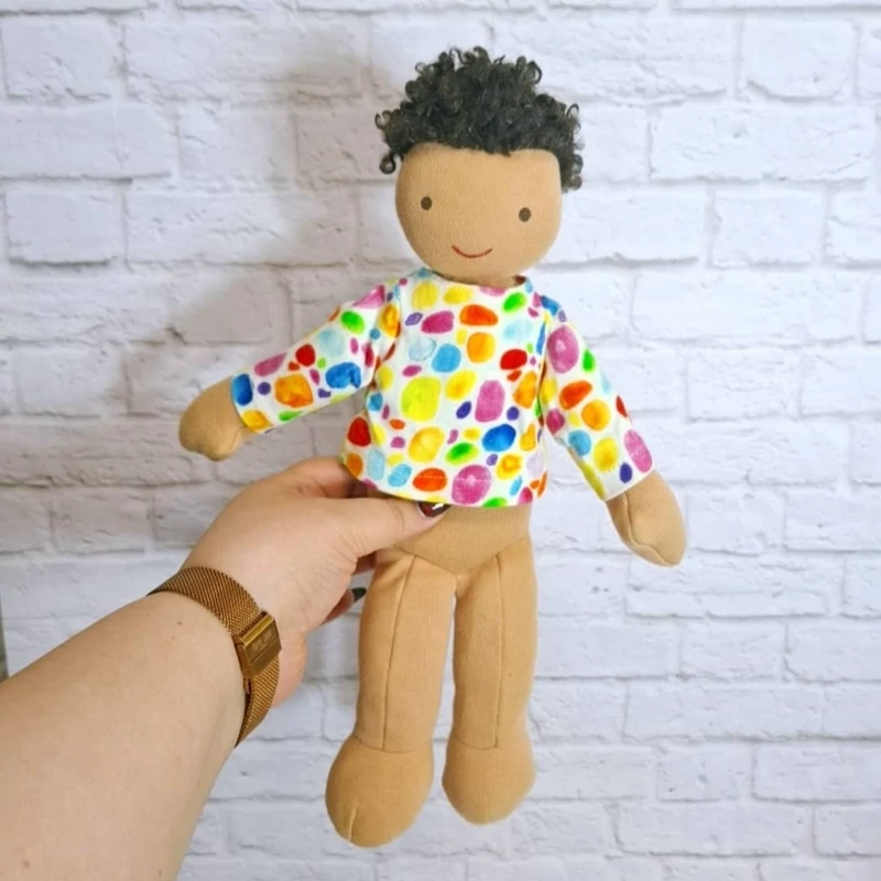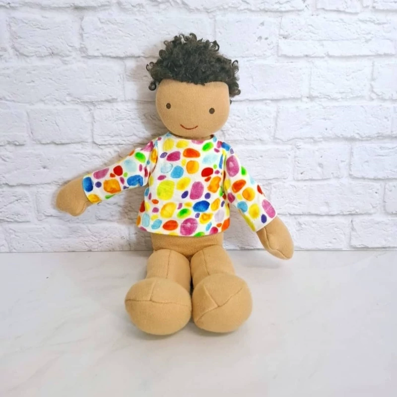 عروسک خارجی و اورجینال پسرک پارچه ای بسیار زیبا و با کیفیت. یک کار بسیار خاص ، موهای فرفری و رنگ پوست سبزه داره ، ضد حساسیت و قابل شستشو ست. بسیار خاص و زیبا ست. یک کار کلکسیونی و خاص، اجزای صورتش با نخ ابریشمی گلدوزی شده.
