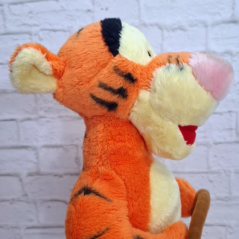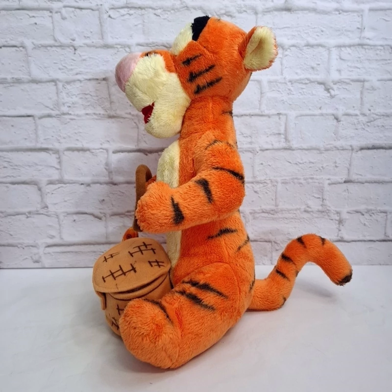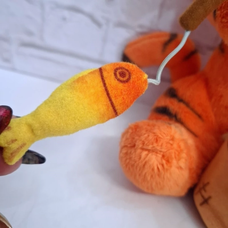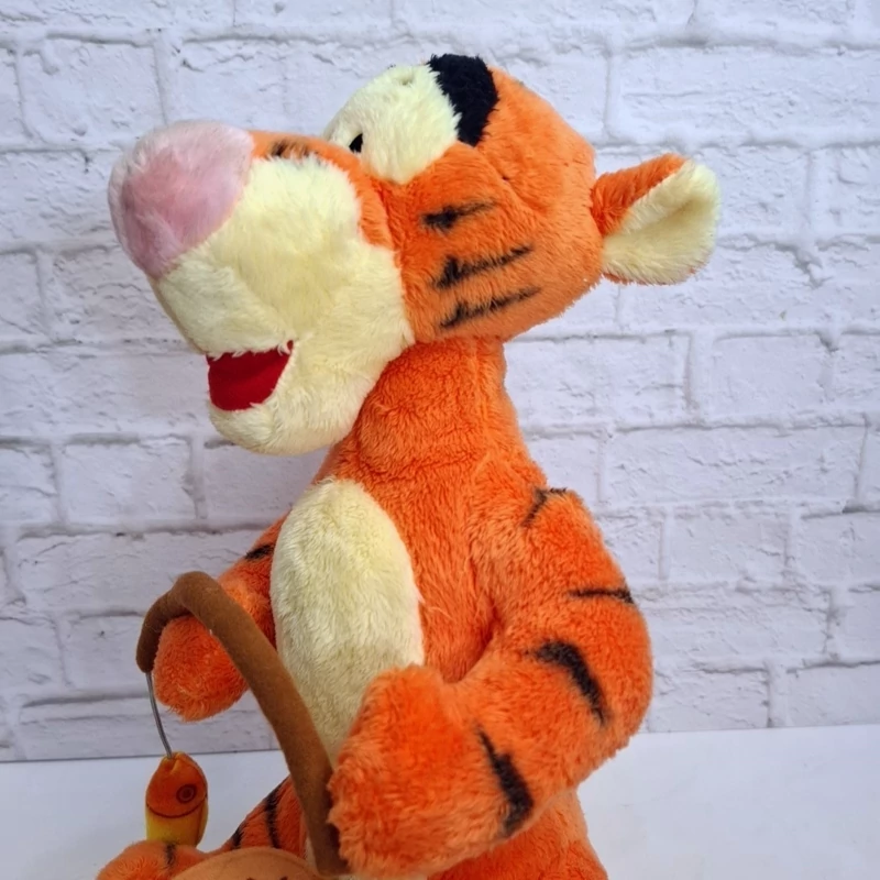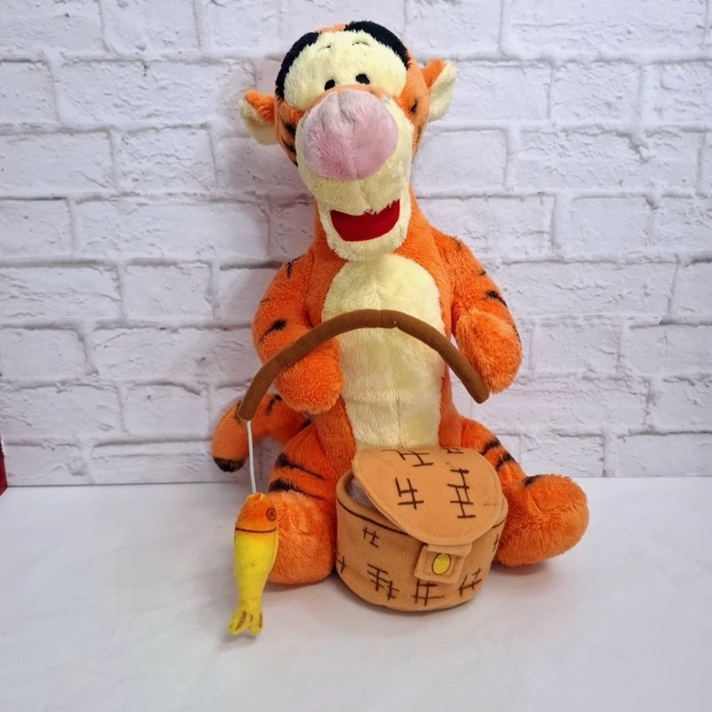 عروسک خارجی و اورجینال فوق العاده زیبا فوقالعاده خاص و فوق العاده با کیفیت شخصیت محبوب تایگر از انیمیشن پو خرسه و دوستان . قلاب ماهیگیری دستش هست که بهش یک ماهی آویزونه و سبد ماهی جلوی پاهاش داره ، جنسش مخمل پرز کوتاه فوقالعاده خوش نگ و با کیفیت مخملی ، مدلش نشسته است ، اجزای صورتش با نخ های ابریشمی براق گلدوزی شده، تپلی و حجیم ، یک کار خیلی خاص و کمیاب از کمپانی دیزنی .