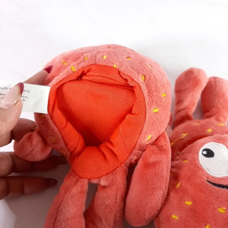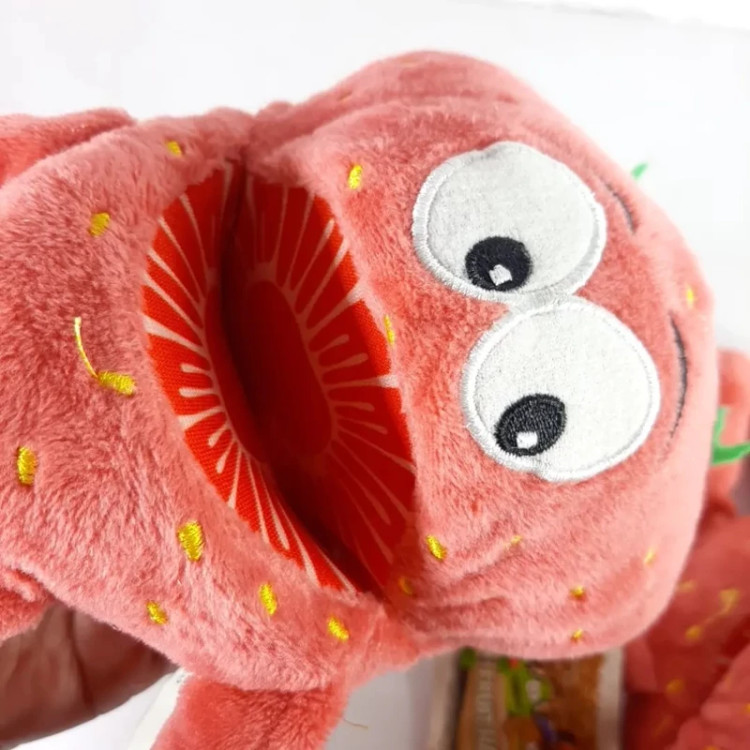 عروسک نمایشی توت فرنگی جنسش مخمل براق و لطیف بسیار با کیفیت قابل شستشو اجزای صورتش گلدوزی شده