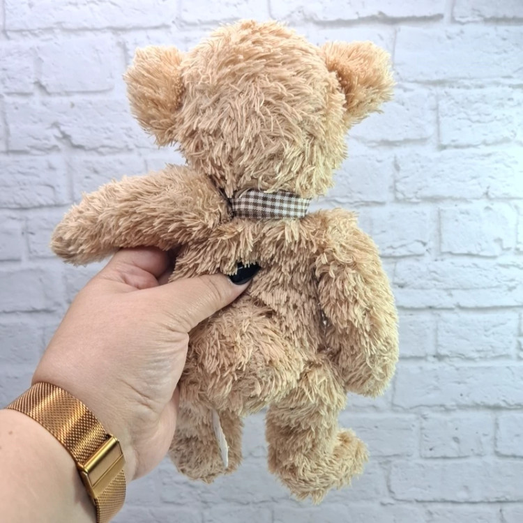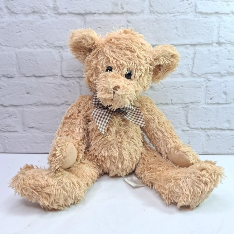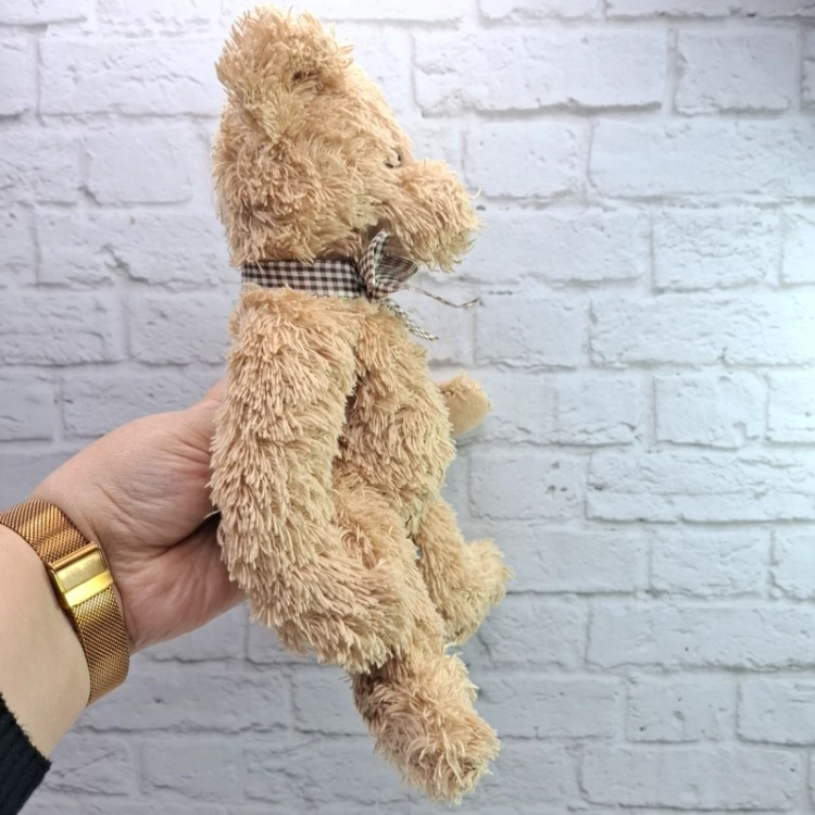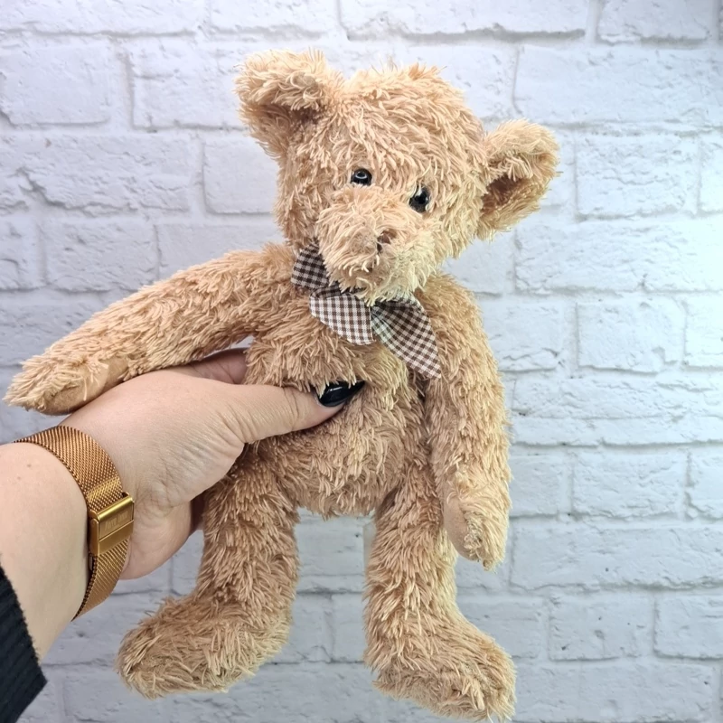 عروسک خارجی و اورجینال خرس فوق العاده زیبا و خاص خرس نسکافه ای با پاپیون چهار خونه ، داخلش شن داره ، درجه یک و فوق العاده خاص و کیوت هست ، خزش ابریشمی بلند نرررررررم ، ضد حساسیت ، قابل شستشو ، خییییلی کیوت و زیباست .