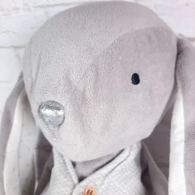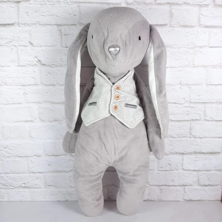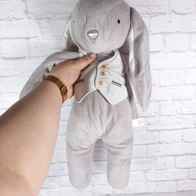 عروسک فوق العاده زیبا،خاص و خوش رنگ خرگوش پارچه ای ،جلیقه اش مخمل طرح دار هست ، جنسش ضد حساسیت، نرم و بغلی ،قابل شستشو ست.