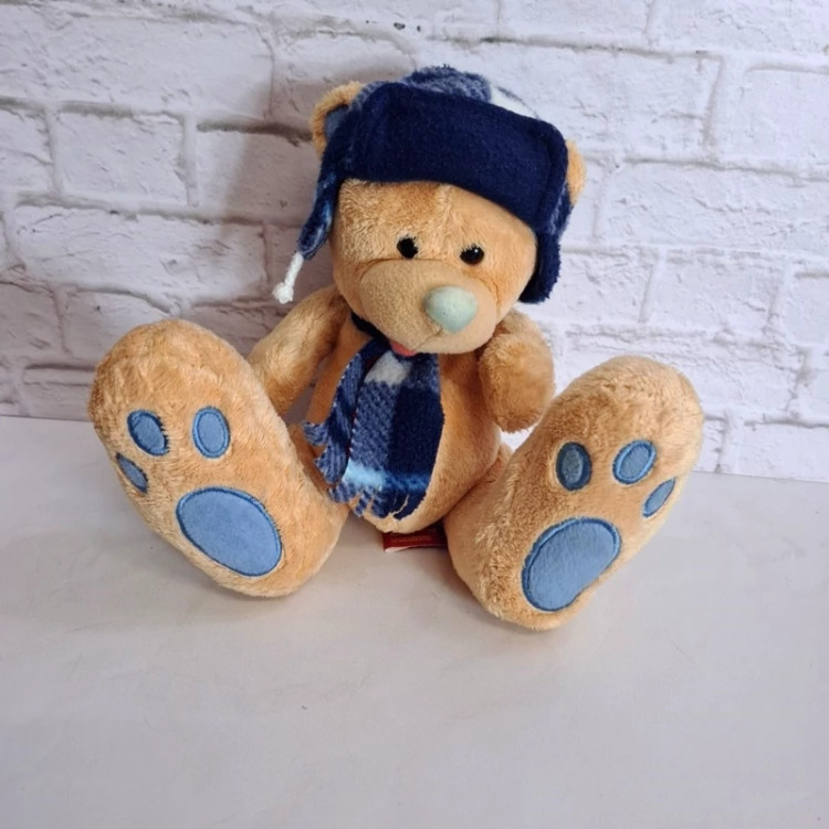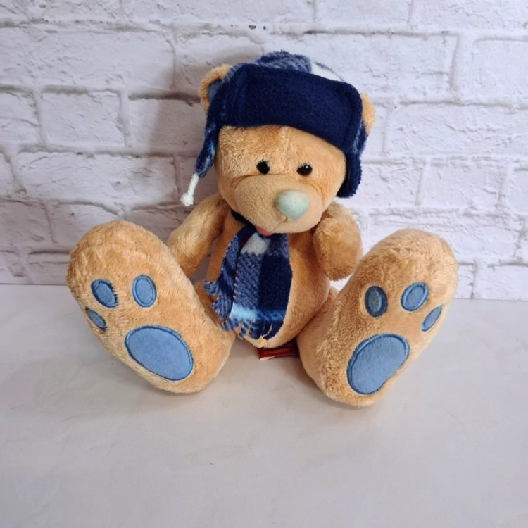 عروسک خارجی و اورجینال فوق العاااااااااده کیوووووووت و زیبای خرس پا گنده ، کلاه و شال گردن چهارخونه پشمی داره ، دماغ آبی ، مدلش نشسته است، پاهای بزرگ داره ، یک کار بسیار خاص و زیبا. درجه یک و عااااااااااالی، ضد حساسیت و قابل شستشو، خز طلایی گندمی براق خوش رنگ. یک کار بسیار خاص. حجیم و تپلی .