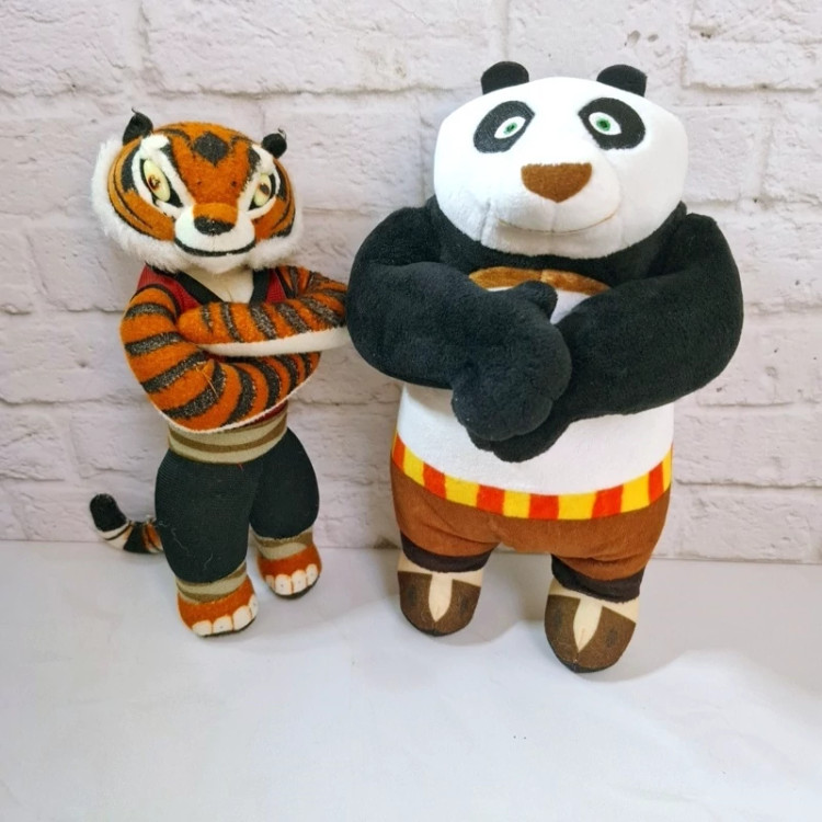 ست دو عددی خارجی و اورجینال فوق العاده کیوت و زیبای پاندای کونگ فو کار و ببری ، ببری چشم های پلاستیکی داره ، پاندا اجزای صورتش با نخ های ابریشمی براق گلدوزی شده. ضد حساسیت و قابل شستشو . پاندا حجیم و تپلی .به صورت ست فروخته می شه .