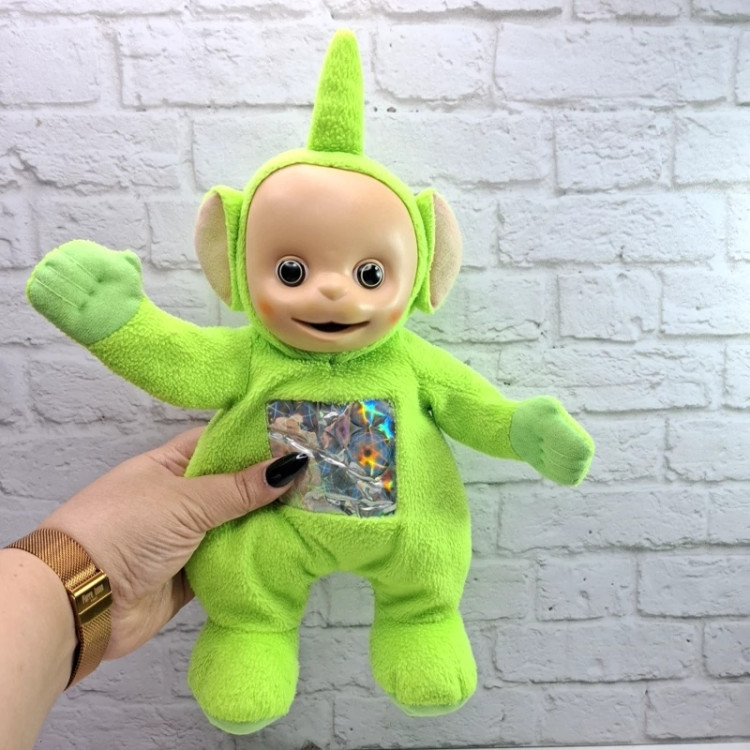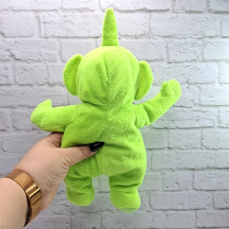 عروسک خارجی و اورجینال فوق العاده کمیاب و خاص شخصیت سبز از مجموعه فوق العاده محبوب آموزشی تله تابیز ، چشم های درشت شیشه ای داره ، داخل بدنش کم پولیش هست .یک کار اورجینال کمیاب ، روی پیشونیش یک لک کوچک داره ، تله تابیز ها مجموعه فوق العاده محبوب آموزشی بین بچه های تمام دنیا هستند ، 4 شخصیت فضایی طور که روی سر هر کدام آنتن های مختلف داره و هر کدوم یک رنگ هستند با یک شخصیت متفاوت . ضد حساسیت و قابل شستشو . این عروسک ها کمیاب هستند و دیگه تولید نمی شن. جنس بدنش مخمل فرفری هست .