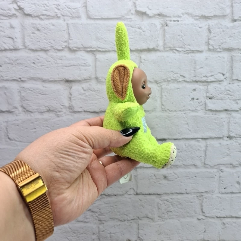 عروسک خارجی و اورجینال فوووووووق العاده کیوووووووووت و زیبای تله تابیز سبز با صورت شکلاتی . از کیوت ترین و گوگولی ترین مدل های تله تابیز هست این فندق ، جنسش مخمل فرفری بسیار خوش رنگ ، مدلش نشسته است ، تله تابیز مجموعه آموزشی قدیمی و بسیار محبوب بین بچه های دنیاست .ادم های فضایی که هر کدام یک مدل آنتن روی سرش داره . این کارها دیگه تولید نمی شن و بسیار کمیاب هستند . ضد حساسیت و قابل شستشو ست .