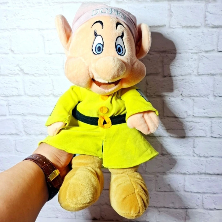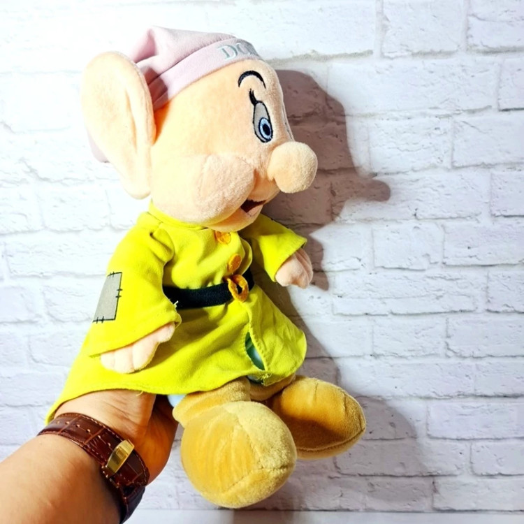 عروسک خارجی و اورجینال فووووووووق العاده با کیفیت و زیبای شخصیت داپلی یکی از هفت کوتوله سفید برفی، ساخت کمپانی معتبر ،شناخته شده و جهانی والت دیزنی ، جنسش مخمل براق بسیار خوش رنگ پرز کوتاه ، اجزای صورتش با ظرافت بسیار با نخ های ابریشمی براق گلدوزی شده ، ضد حساسیت و قابل شستشوست ، سایز بزرگ ، یک کار کمیاب و خاص از این مجموعه .کاملا مطابق کارکتر اصلی انیمیشن محبوب و نوستالژیک سفید برفی و هفت کوتوله.