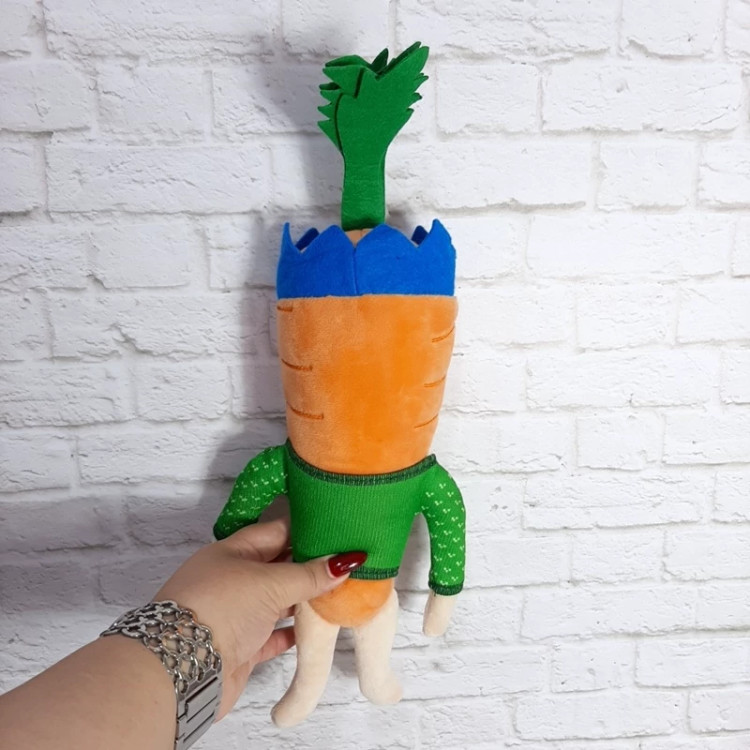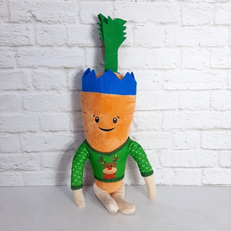 عروسک خارجی و اورجینال هویج پولیور پوش ، پولیورش طرح کریسمسی داره ، بافتنی هست ، جنس خود هویج مخمل خوووش رنگ براق ، سبزی بالای سرش نمدی ، اجزای صورتش گلدوزی شده ، قابل شستشو ست . کیفیت عاااااالی .
