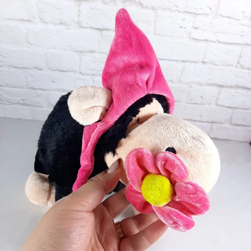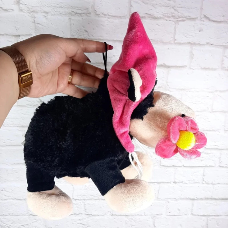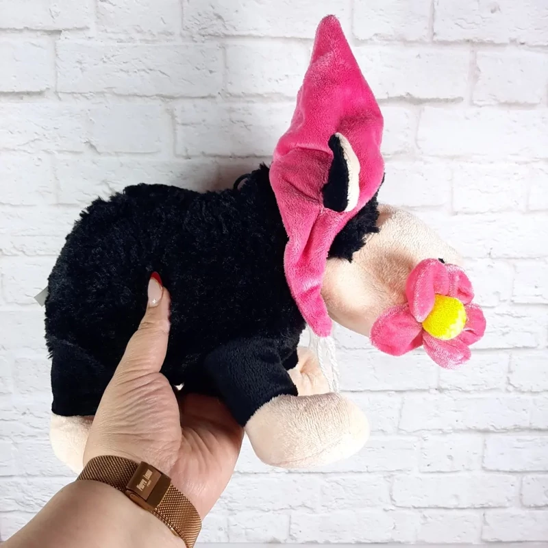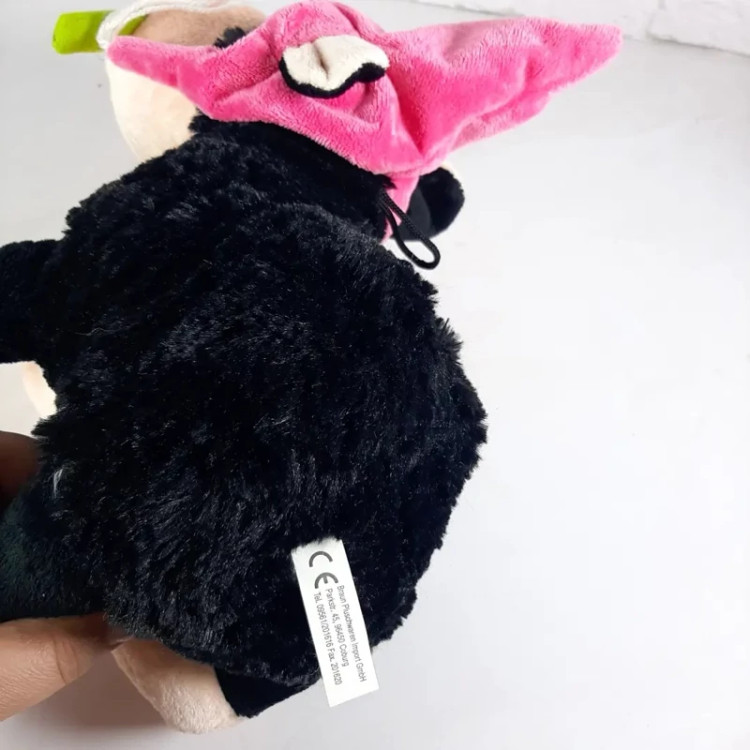 عروسک خارجی گوسفند سیاه مخملی بسیار با کیفیت و زیبا،خز شاین و براق، مخمل باکیفیت نرم. قابل شستشوست.بالای سرش بند داره