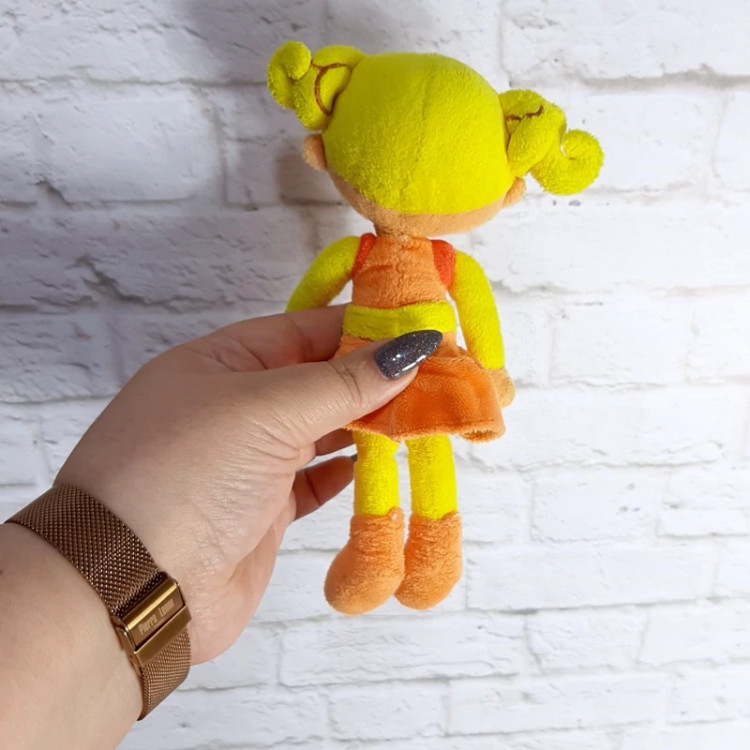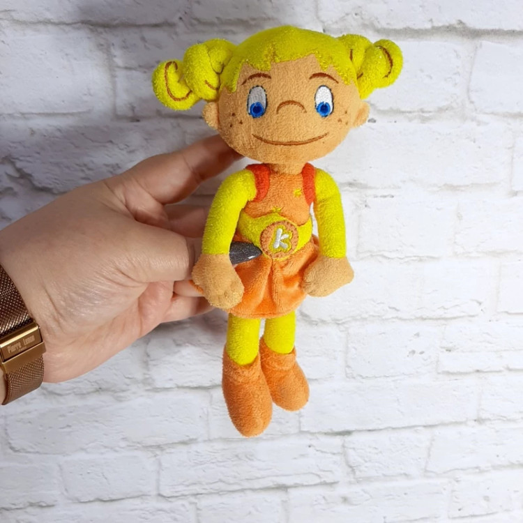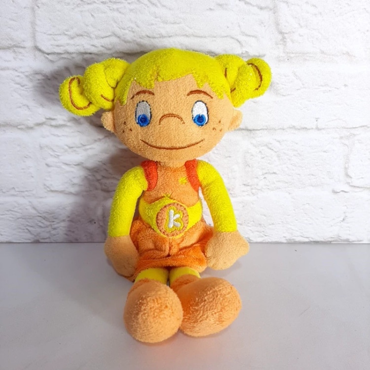 عروسک خارجی و اورجینال دخترک زرد پوش بسیار زیبا و با کیفیت ، جنسش مخمل پرز کوتاه ، اجزای صورتش گلدوزی شده ، قابل شستشو ست.