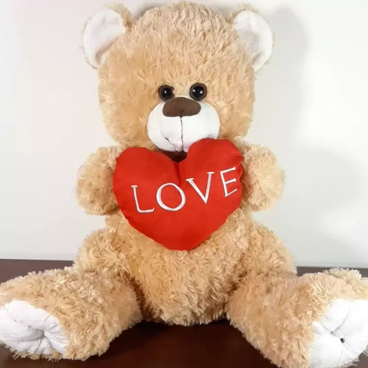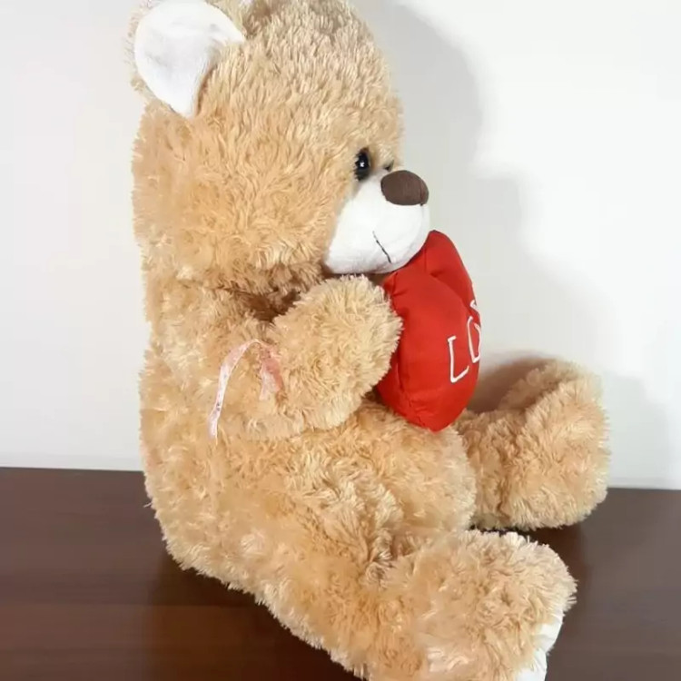 عروسک خرسی بزرگ از برند فوق العاده معتبر تدی بر ، کف پاها و پوزه اش از مخمل لطیف و براق هست ، دستش یک قلب بزرگ مخمل قرمز داره ،مدلش نشسته است. خزش ابریشمی و براق هست.قابل شستشو ست.