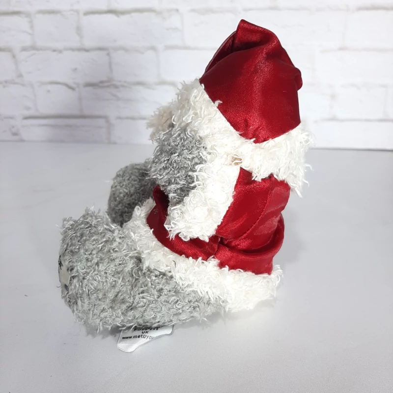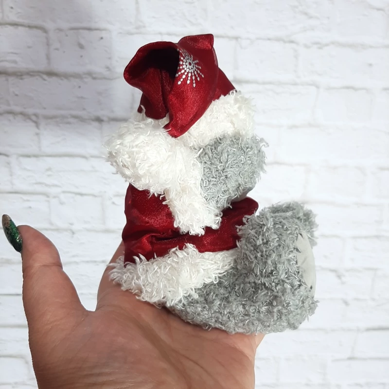 عروسک خرس محبوب و زیبای برند می تو یو با لباس زمستانی دست هاش را گذاشته کنار سرش روی کلاهش