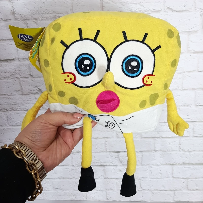 عروسک پولیشی تگ دار بچگی باب اسفنجی بسیاااار زیبا،خوش رنگ و با کیفیت.اجزای صورتش گلدوزی شده هستند.پستونک دهنشه و پوشک شده.قابل شستشو.