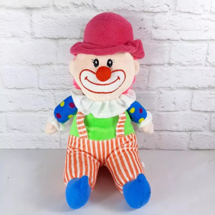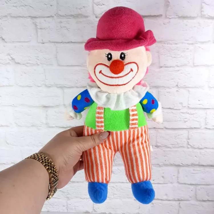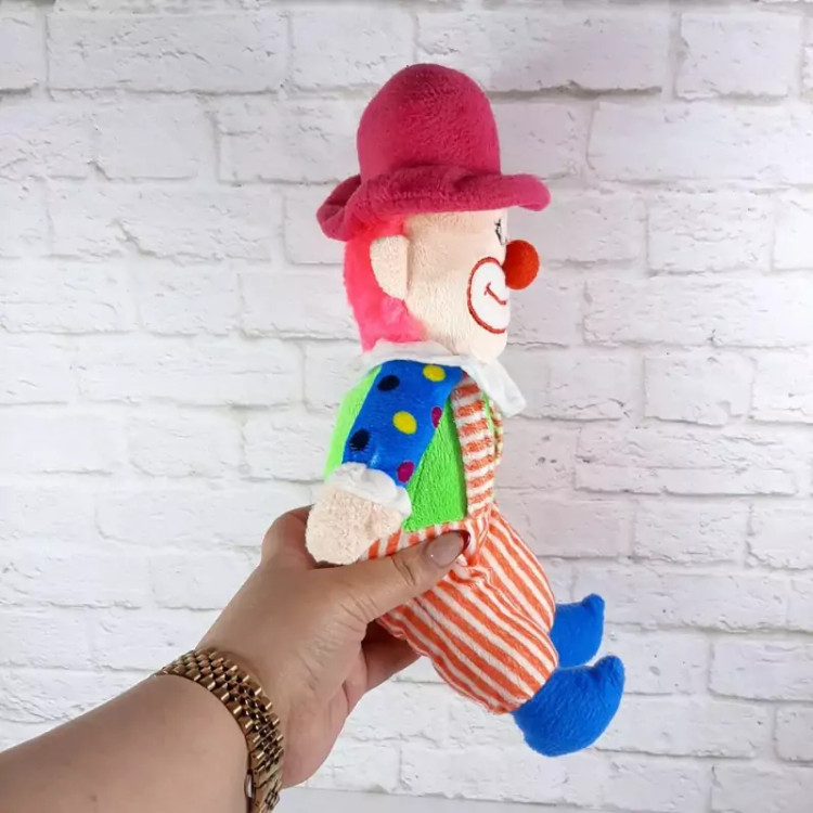 عروسک بسیار زیبای دلقک پارچه ای، اجزای صورتش گلدوزی شده ،مدلش نشسته است ،بسیار با کیفیت و زیبا.قابل شستشوست.