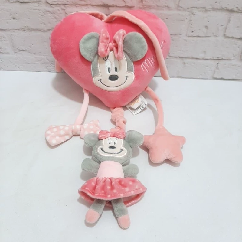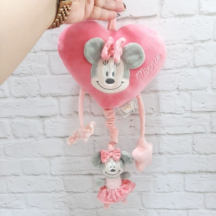 عروسک خارجی و اورجینال می نی موس قلبی صورتی ، نخ کش موزیکال ، بالای سرش بند داره برای آویزان کردن از کمد ،کریر، تخت و ...، جنسش مخمل لطیف ضد حساسیت . ساخت برند دیزنی .بسیار خوش رنگ و با کیفیت .
