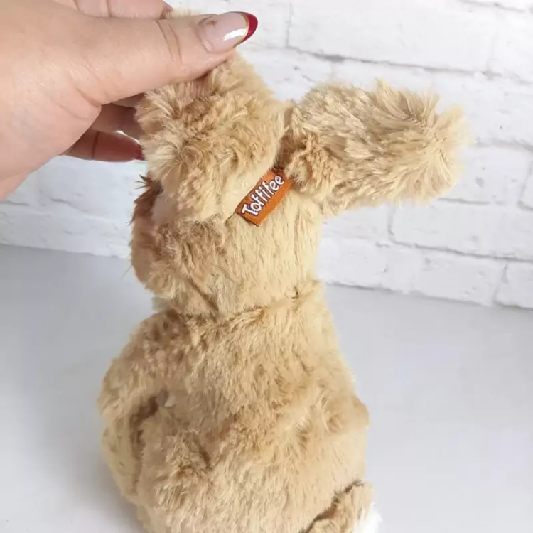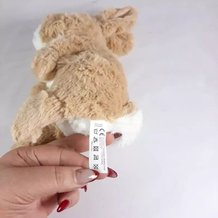 عروسک پولیشی خرگوش طبیعی فوق العاده زیبا و طبیعی با رنگ نسکافه ای. خز ابریشمی نرم و لطیف.مدلش ایستاده است،قابل شستشو
