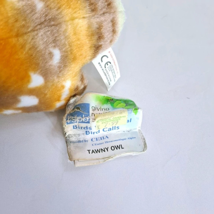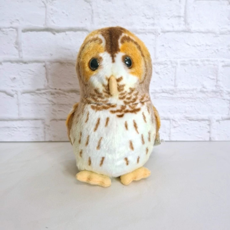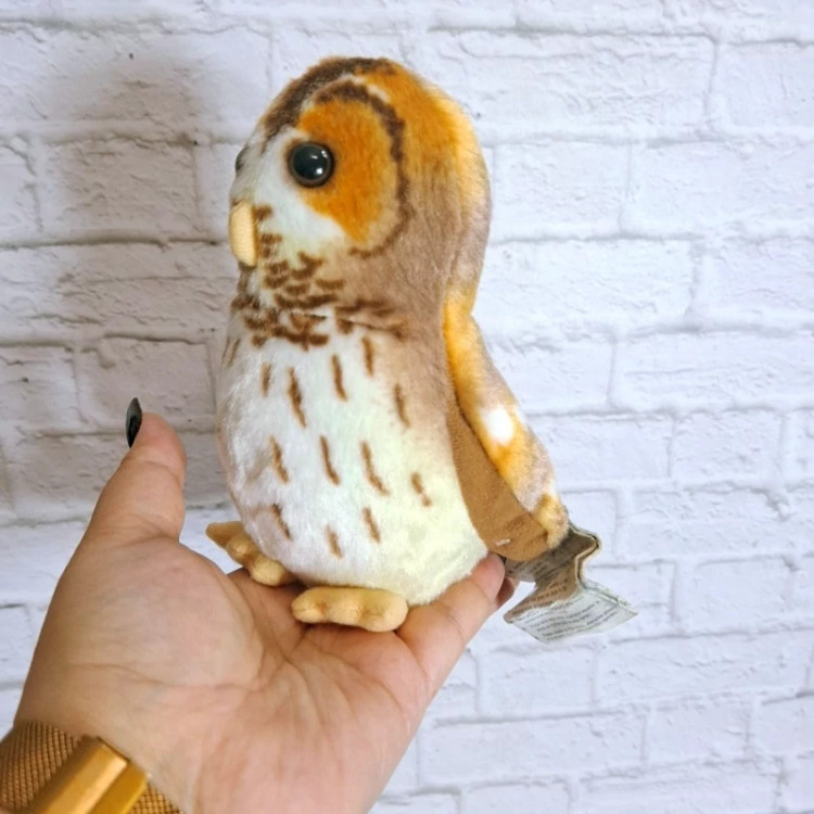 عروسک خارجی و اورجینال جغد تگ دار با چشم های شیشه ای ، یک کار درجه یک و با کیفیت . زیبا و خوش رنگ جنسش مخمل پرز کوتاه خوابیده است . قابل شستشو.