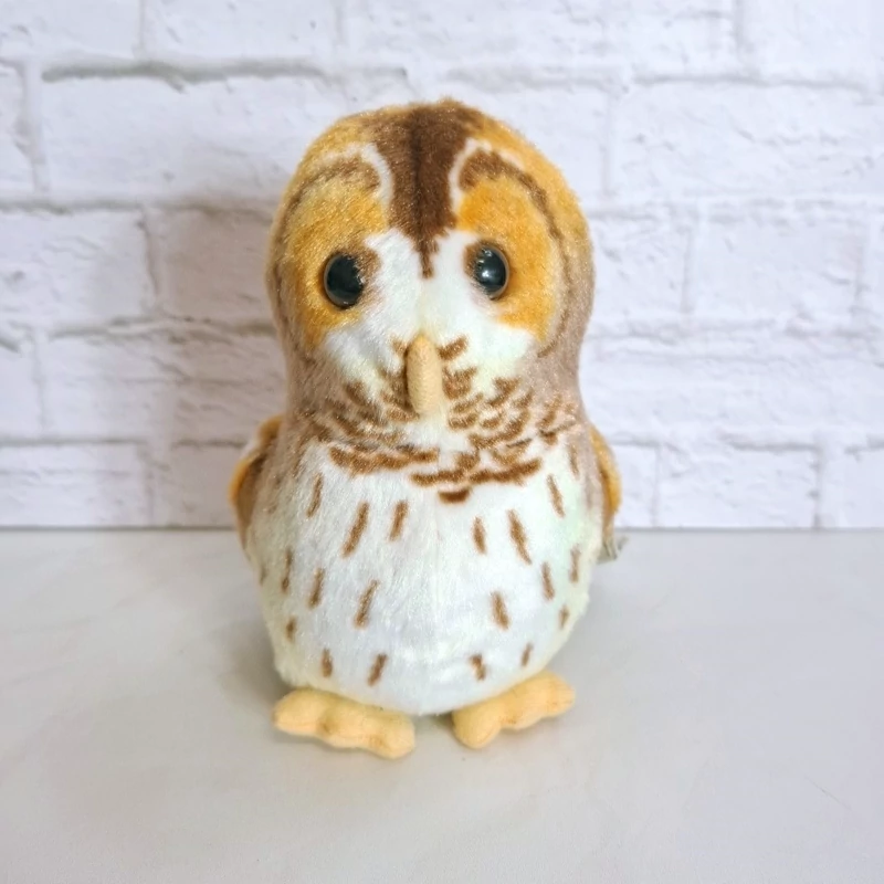عروسک خارجی و اورجینال جغد تگ دار با چشم های شیشه ای ، یک کار درجه یک و با کیفیت . زیبا و خوش رنگ جنسش مخمل پرز کوتاه خوابیده است . قابل شستشو.