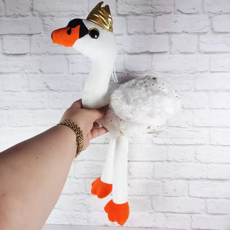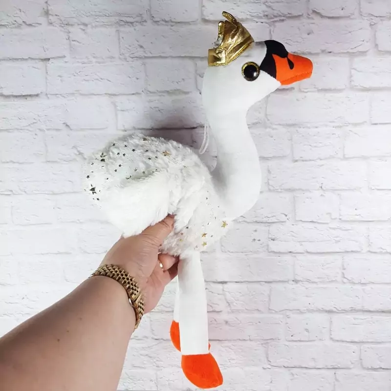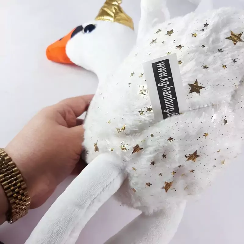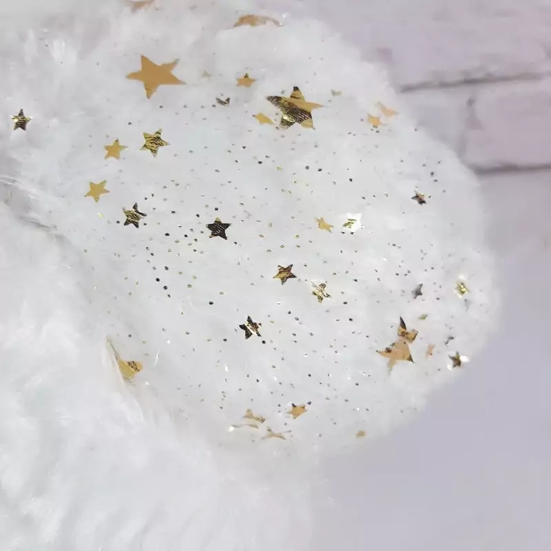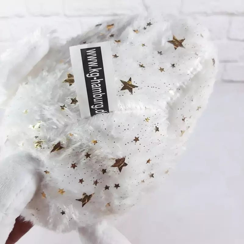 عروسک فوق العاده زیبا و با کیفیت قوی آلمانی،بال هاش پر سفید و روی بدنش کلی ستاره و نقش طلایی داره، بالای سرش بند برای آویزان کردنه،بسیار زیباتر از عکسشه.قابل شستشو ست.
