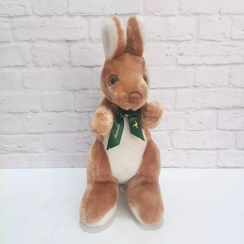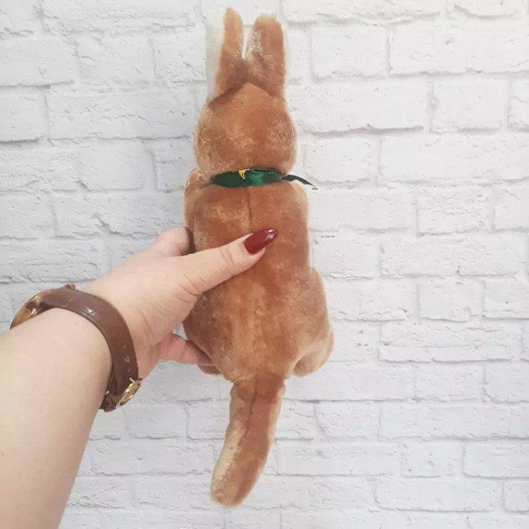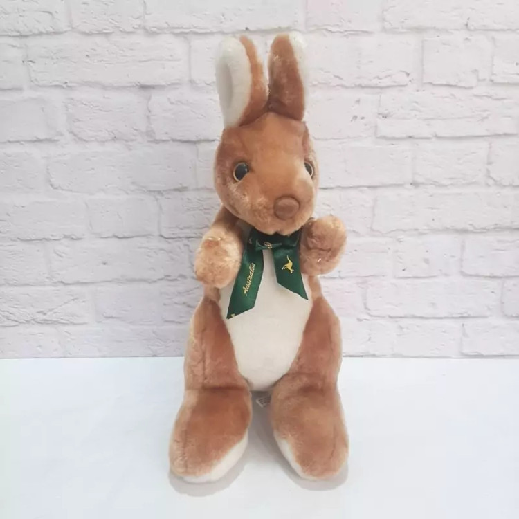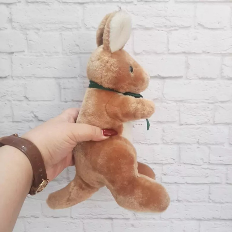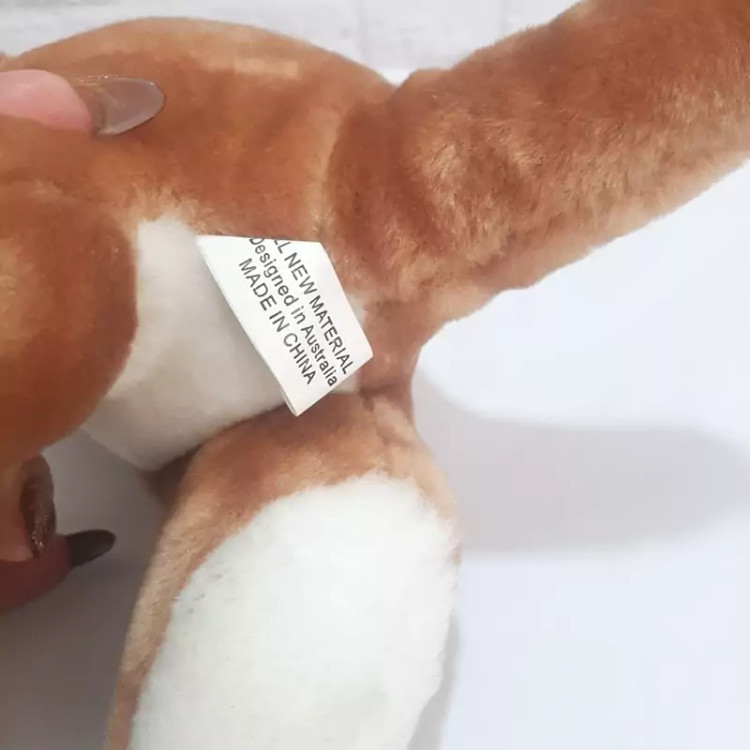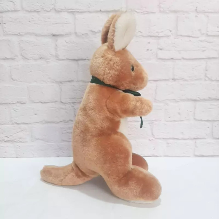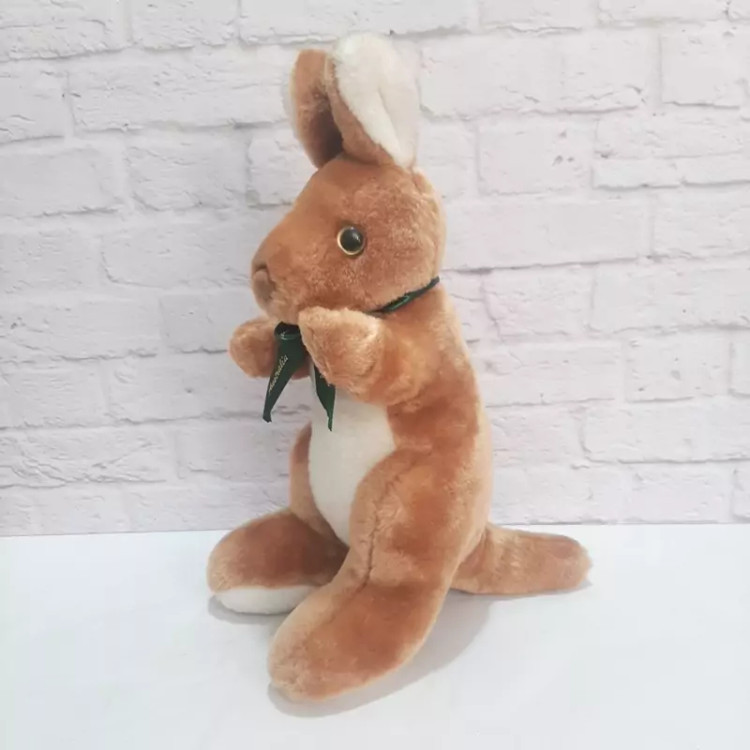 عروسک خارجی و اورجینال فوق العاده خوووووش رنگ و درجه یک کانگورو . جنسش مخمل براااااااااااق پرز کوتاه، نررررررذم و لطبف .توپر و سفت . مثل عکس روی پاهاش می ایسته ، ضد حساسیت . قابل شستشو .