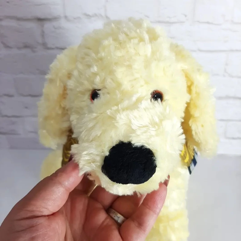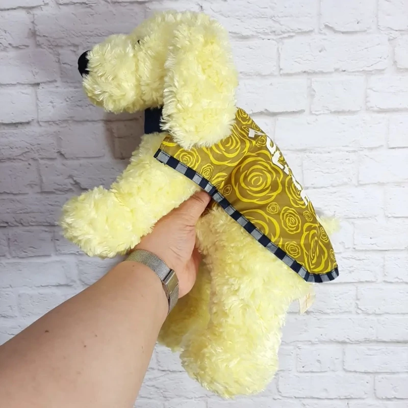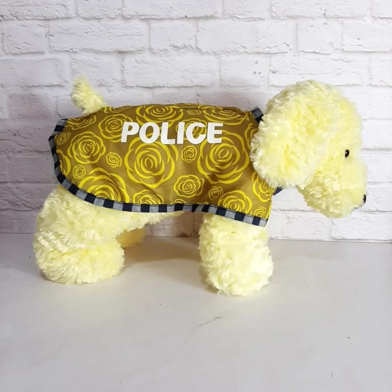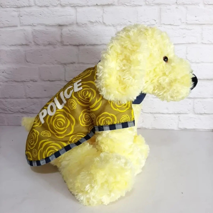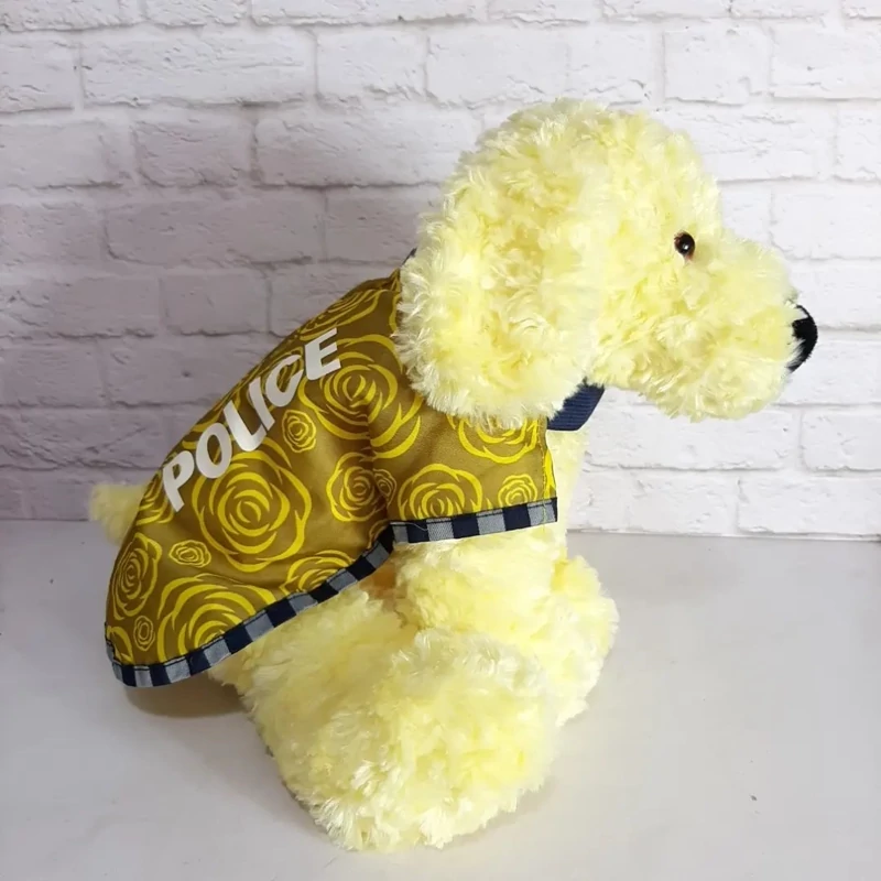 عروسک خارجی فوق العاده با کیفیت و خوش رنگ سگ پلیس ، کاور لباس پلیسش در میاد ، خزش نرم ابریشمی براق ، تپلی و حجیم ، هم می تونه در حالت نشسته باشه هم مثل عکس ایستاده ، کیفیتش عالی ، قابل شستشو ست.خز نرم ، براق ، زرد بسیار خوش رنگ .