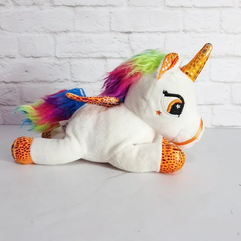 عروسک خارجی و اورجینال تک شاخ سفید فوق العاده زیبا با کیفیت مدل خوابیده ، اجزای صورتش گلدوزی شده ، یال و دم هفت رنگ داره ، فوق العاده زیبا و با کیفیت ، بسیار زیباتر از عکسشه ، قابل شستشو ست .