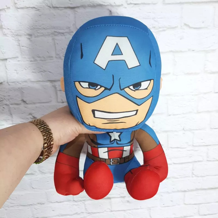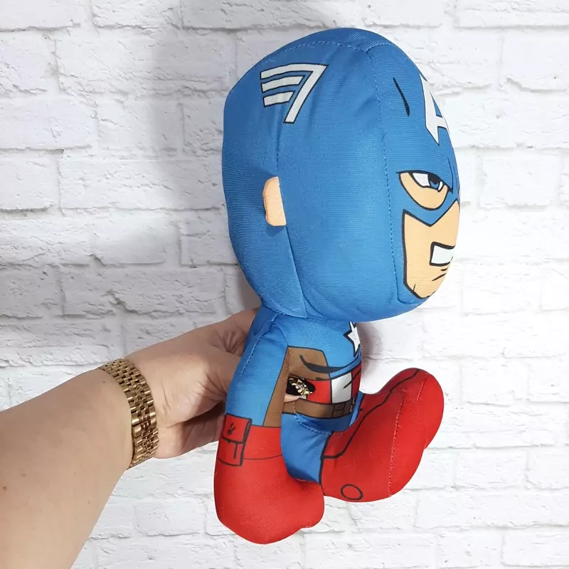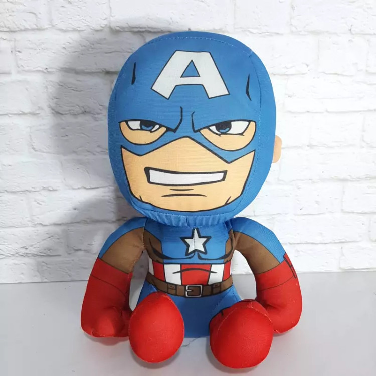 عروسک خارجی و اورجینال کاپیتان امریکن فوق العاده زیبا با کیفیت و خوش رنگ ،تپلی و حجیم . مدل نشسته ، قابل شستشو ست .