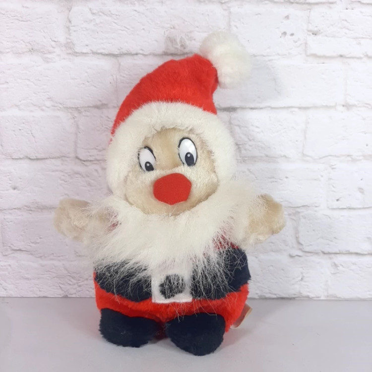 عروسک پیرمرد خارجی و اورجینال بسیار زیبا و با کیفیت جنسش خز موئی براق چشم هاش پلاستیکی مدلش ایستاده است قابل شستشو