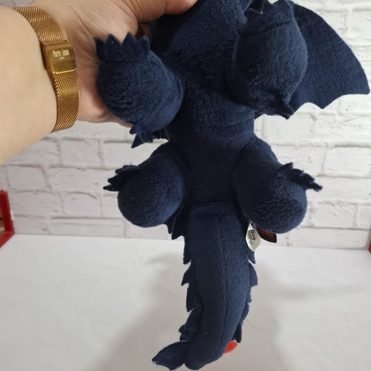 عروسک خارجی و اورجینال اژدهای بی دندون سایز متوسط بزرگ رنگ سورمه ای ، بسیار با کیفیت و زیبا . مثل عکس روی پاهاش می ایسته . اجزای صورتش با نخ های ابریشمی گلدوزی شده ، بال های بزرگ از جنس نمد داره، قابل شستشو ست . جنس خودش مخمل براق با کیفیت ، نرم و لطیف و ضد حساسیت هست .از مجموعه پرطرفدار اژدها سوران.