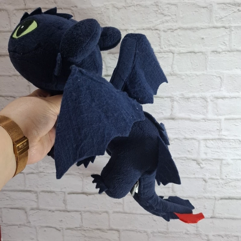 عروسک خارجی و اورجینال اژدهای بی دندون سایز متوسط بزرگ رنگ سورمه ای ، بسیار با کیفیت و زیبا . مثل عکس روی پاهاش می ایسته . اجزای صورتش با نخ های ابریشمی گلدوزی شده ، بال های بزرگ از جنس نمد داره، قابل شستشو ست . جنس خودش مخمل براق با کیفیت ، نرم و لطیف و ضد حساسیت هست .از مجموعه پرطرفدار اژدها سوران.