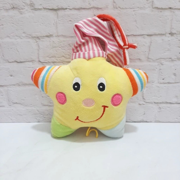 عروسک خارجی و اورجینال فوق العاده زیبا، با کیفیت و خوش رنگ ستاره نخ کش موزیکال . پشتش بند داره برای آویزان کردن . فوق العاده نرم و لطیف. مخمل لطیف لیمویی.