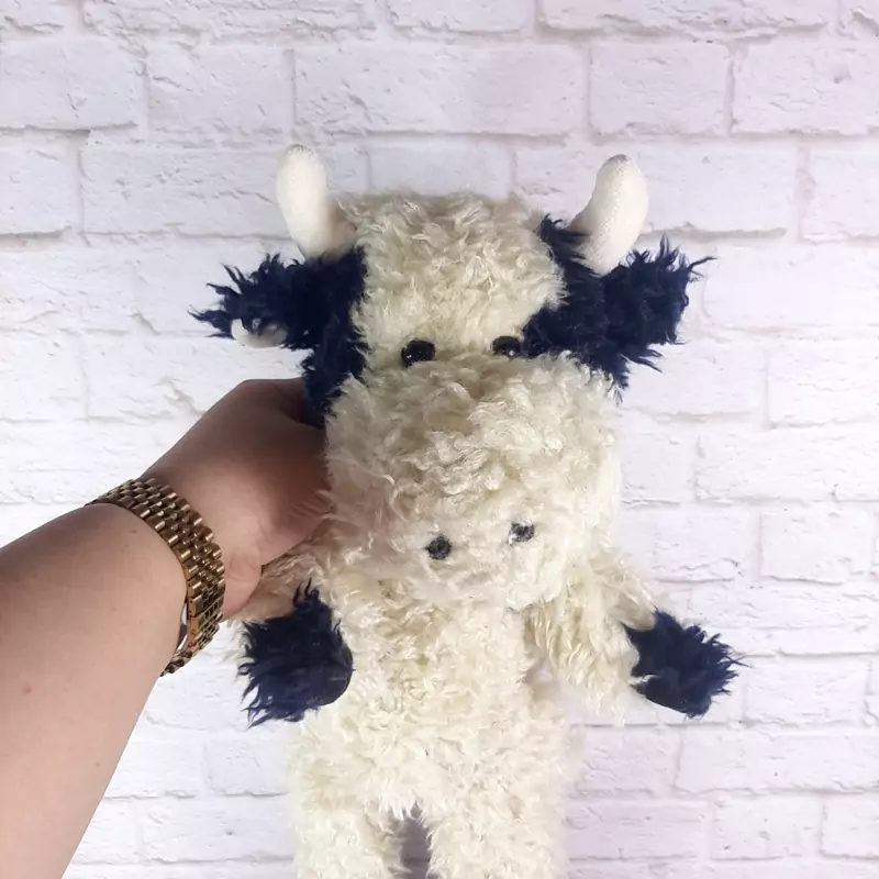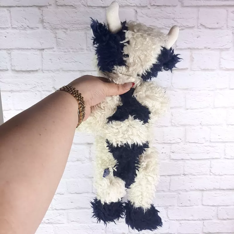 عروسک خارجی و اورجینال گاو با خز ابریشمی و فوق العاده با کیفیت . خز بلند ابریشمی داره ، جنسش ضد حساسیت ، کف پاهاش مخمل راه راه ، قابل شستشو ست ،ضد حساسیت . داخلش شن داره ، نرم و بغلی .