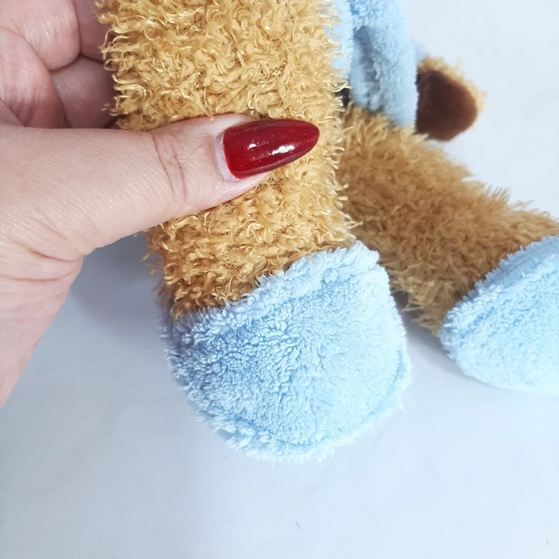 تدی خرسه بسیار با کیفیت و زیبا .خزش فرفری ابریشمی،حوله و دمپایی روفرشی تنشه،داخلش شن داره ، خزش کمی براقه ، ضد حساسیت و قابل شستشو . نرم و بغلی .ایشون از تدی خرس های کمیاب هستند .
