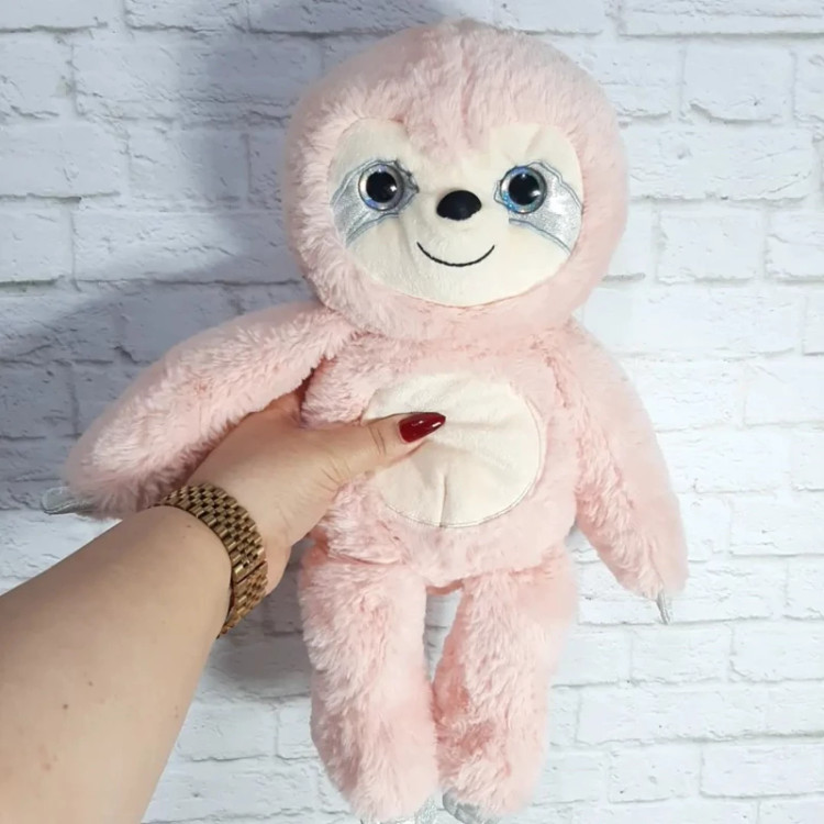 عروسک خارجی تنبل صورتی با چشم های تیله ای درشت . رنگ صورتی بسیار ملیح و خوش رنگ . خز نررررررررم ابریشمی داره ،ناخون هاش از پارچه نقره ای اکلیلی بسیار زیباست . مدلش نشسته است . جنسش ضد حساسیت ، نررررررم و بغلی ، قابل شستشو ست .
