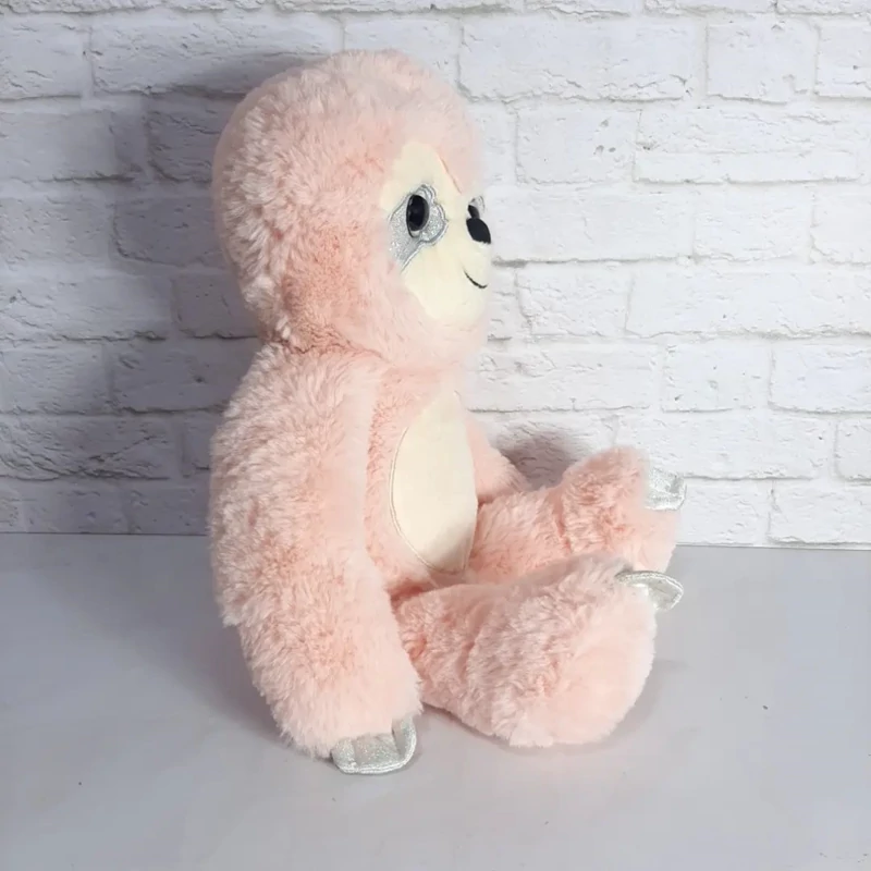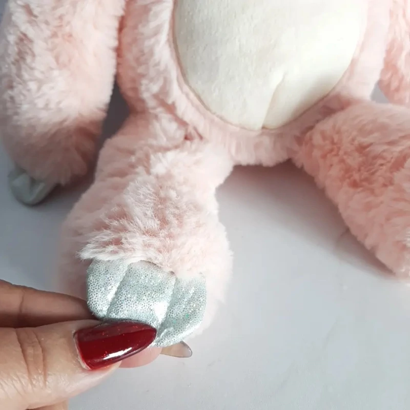 عروسک خارجی تنبل صورتی با چشم های تیله ای درشت . رنگ صورتی بسیار ملیح و خوش رنگ . خز نررررررررم ابریشمی داره ،ناخون هاش از پارچه نقره ای اکلیلی بسیار زیباست . مدلش نشسته است . جنسش ضد حساسیت ، نررررررم و بغلی ، قابل شستشو ست .
